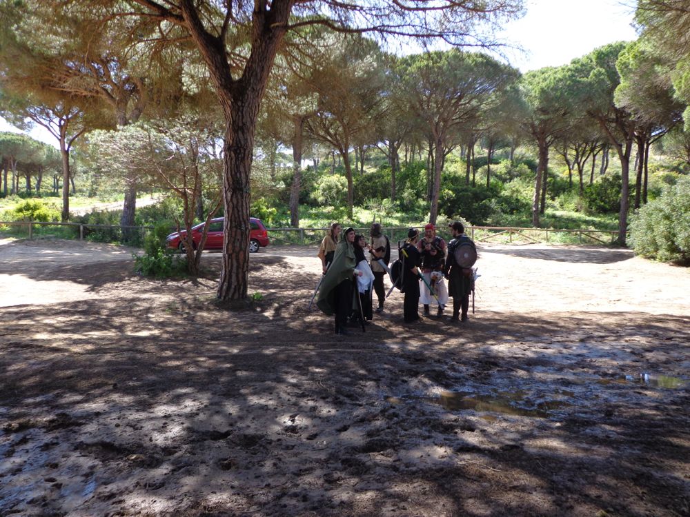 Además de todo tipo de plantas, más perros, charcos y arroyos en los que se han bañado, y otros excursionistas, encontramos grupos de jóvenes haciendo juegos de rol, con sus disfraces y sus armas de atrezzo.